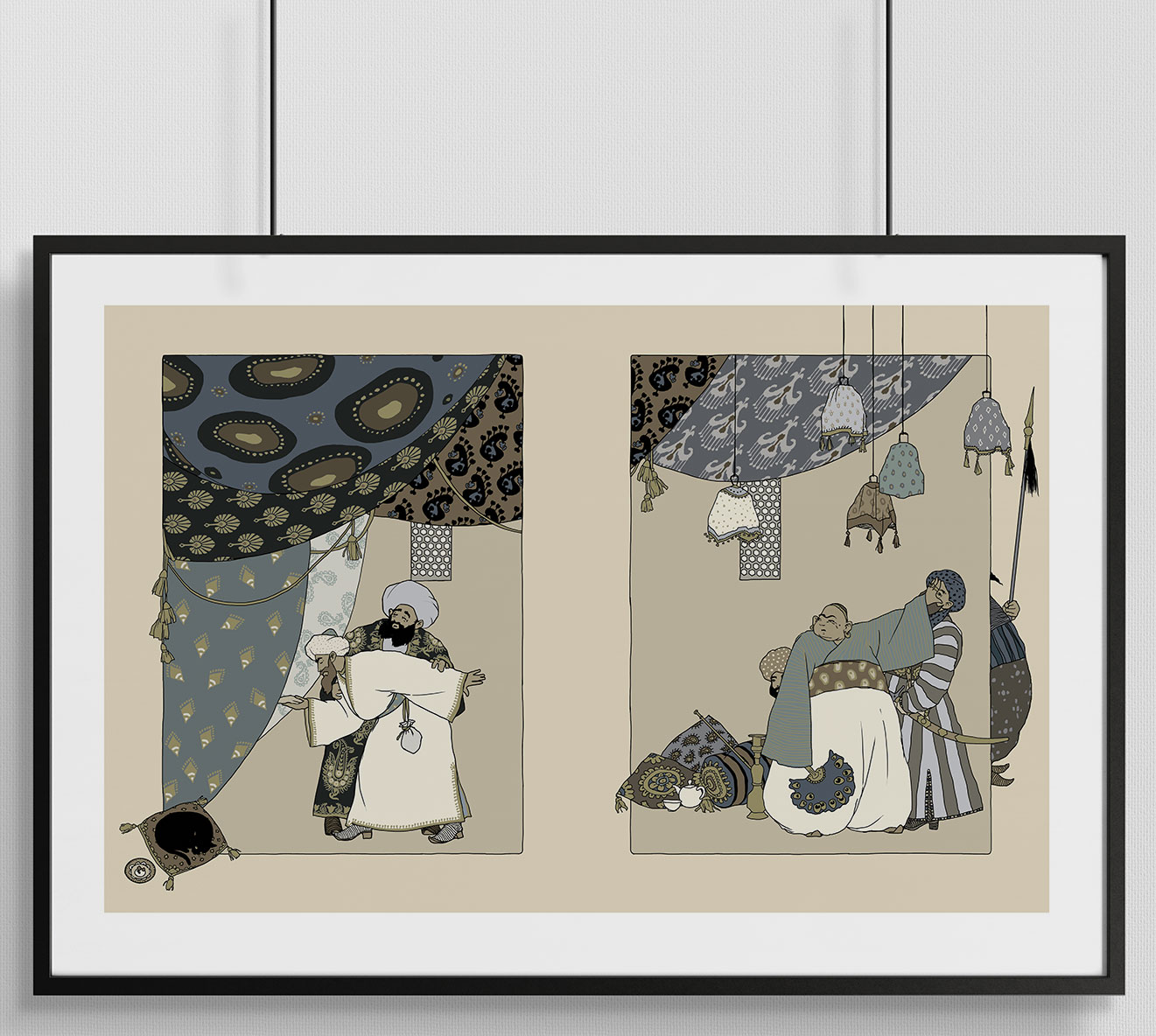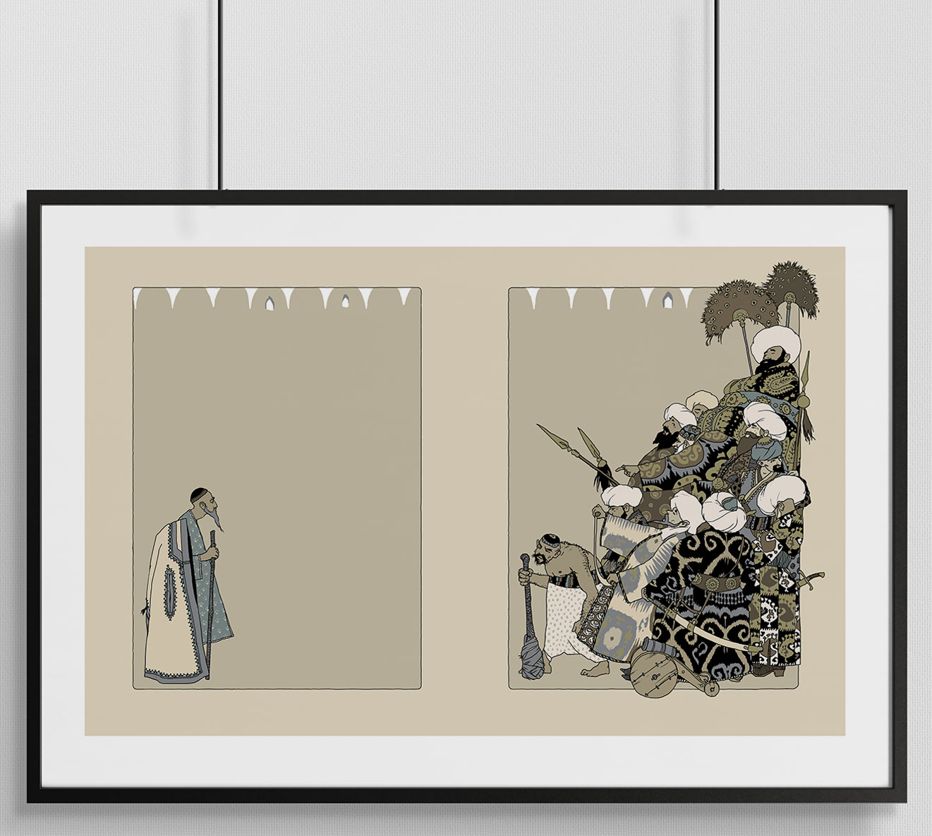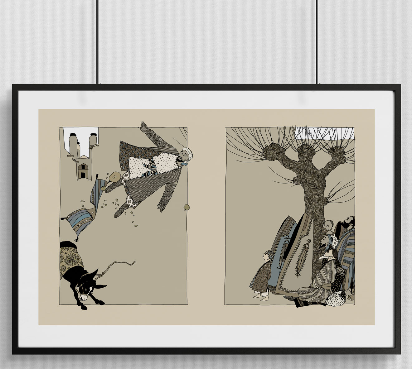 - Иллюстрации из книги «Повесть о Ходже Насреддине» Л. В. Соловьева, художник - Алексей Дмитриев. Размер: 50 x 70 см. Мелованная матовая бумага, плотность - 200 г.